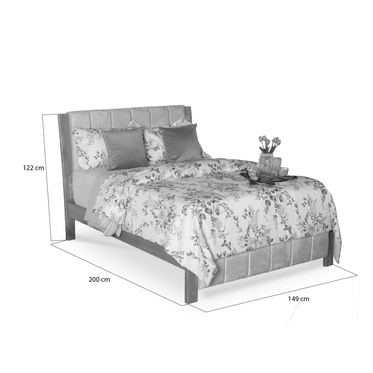Estructura en madera roble acabados en RH, Tapizado en tela, nocheros contemporáneos pintura Poliuretano.