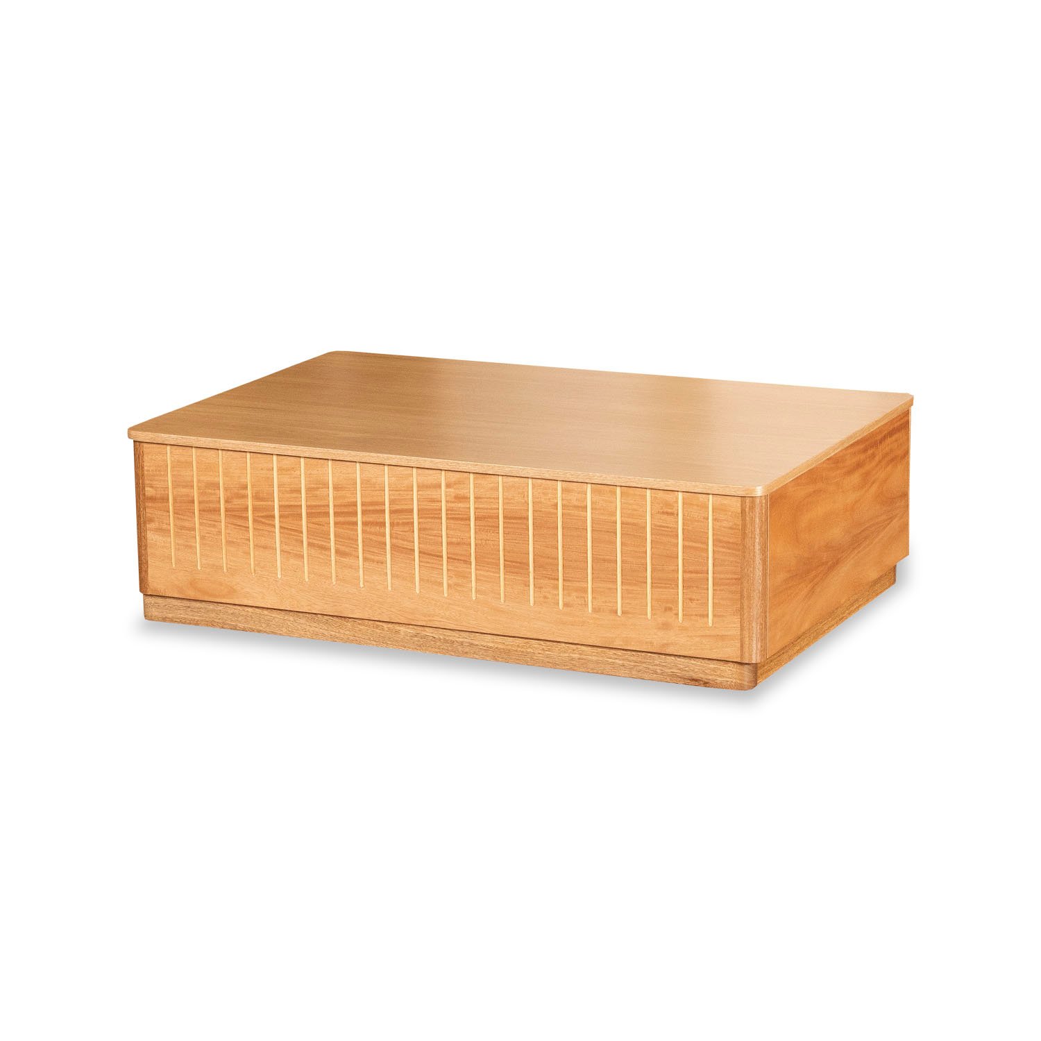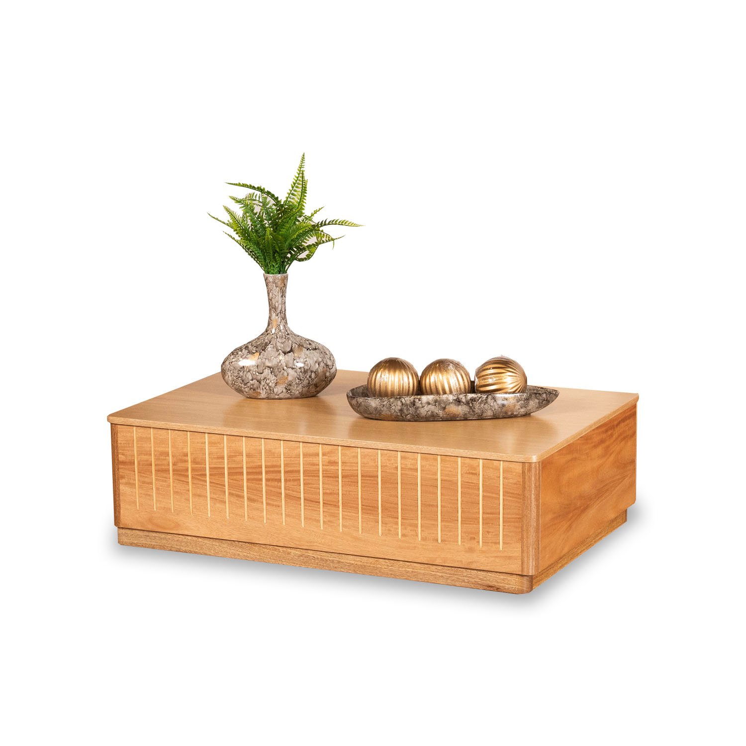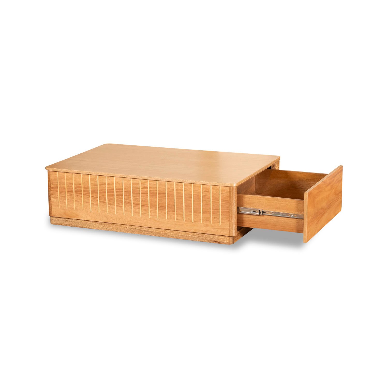 Mesa de centro con gaveta en tono natural con acabados elegantes y de alta resistencia.
