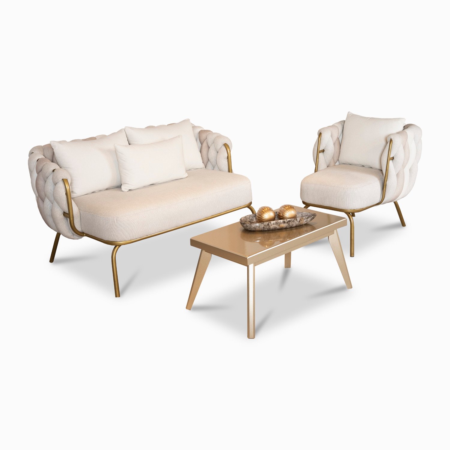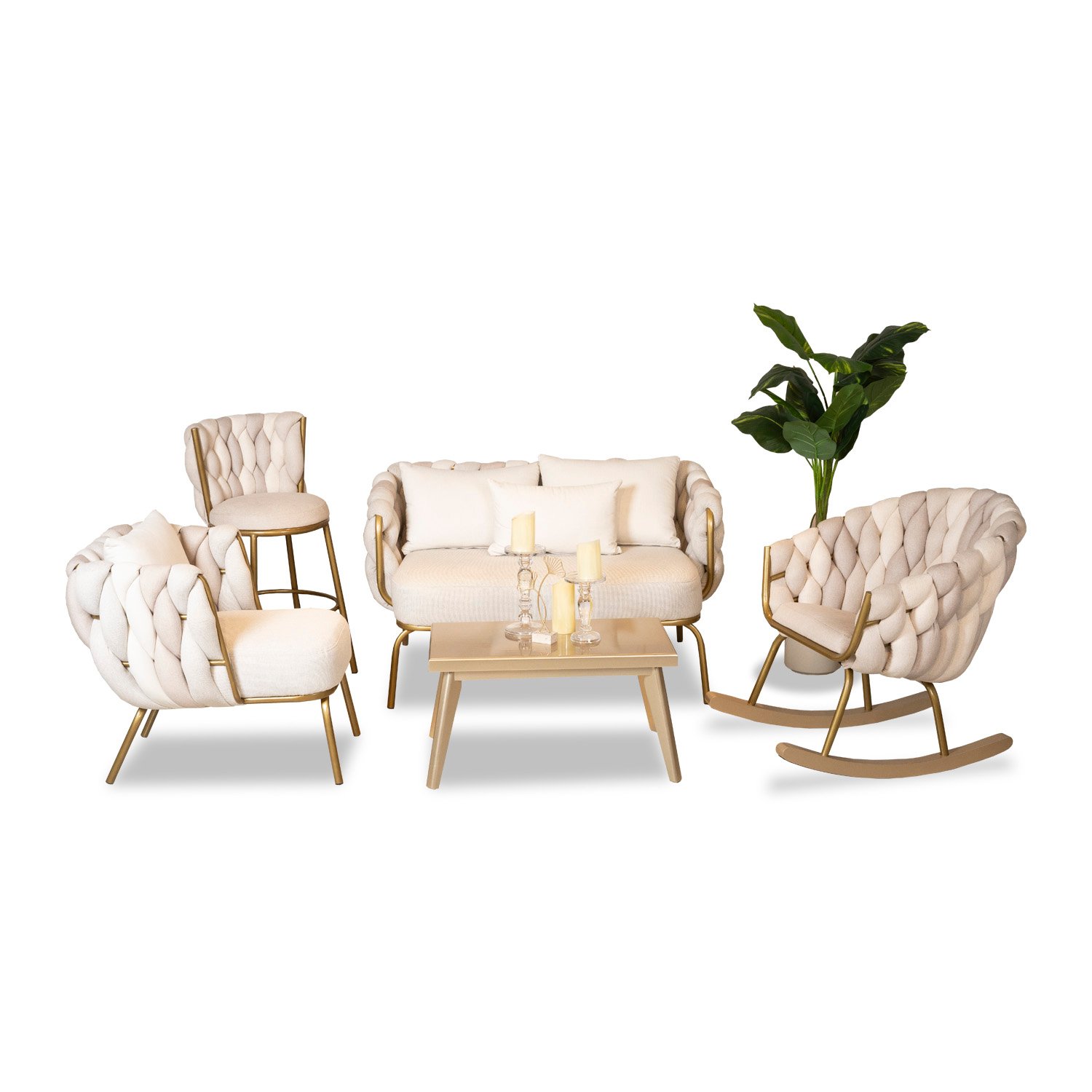 Fabricada con madera seca e inmunizada en Roble y tapizada en tela de fácil limpieza.